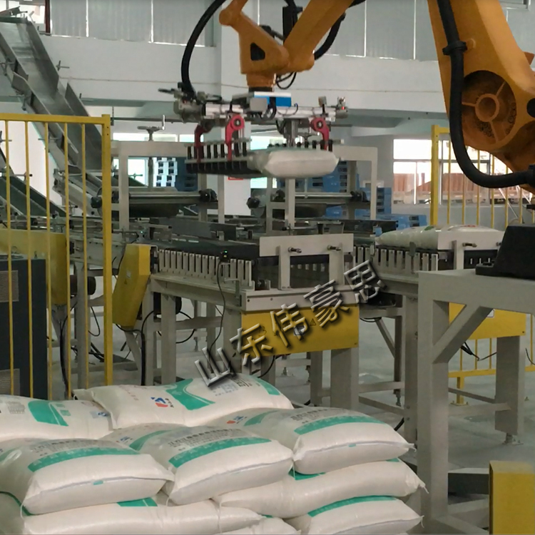 山东伟豪思生产的自动煤粉包装码垛生产线是由全自动包装码垛机和码垛机器人组成,可以完成粘性粉体、超轻细粉体及普通物料的全自动定量包装码垛生产。该生产线可进行纸塑复合包装袋、全纸包装袋、全塑包装袋等不同材质的阀口、敞口包装袋包装生产。该生产线包装精度高、无粉尘污染、自动化程度高、码垛速度达1000包/小时以上。