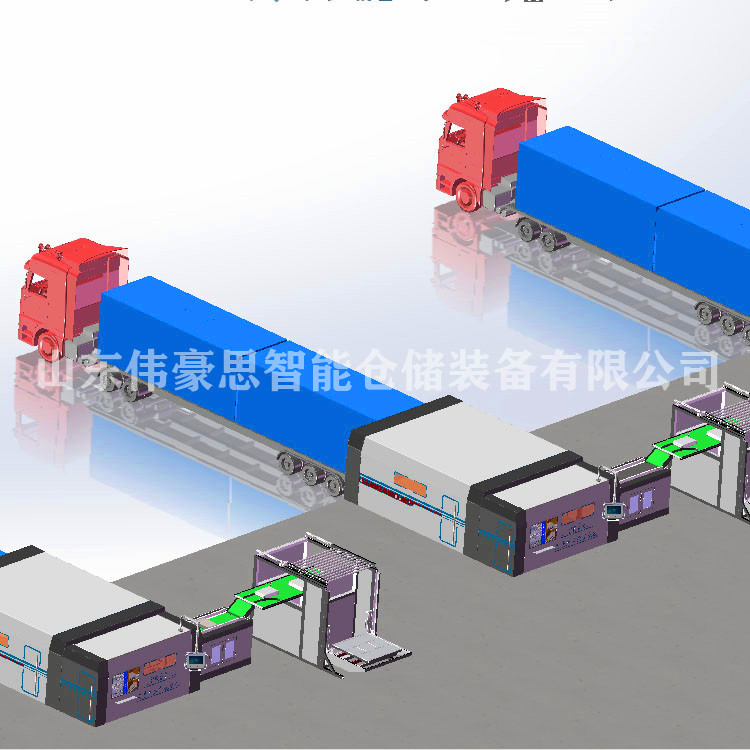 7.伸缩皮带机将货物按照设定顺序摆放至集装箱内;