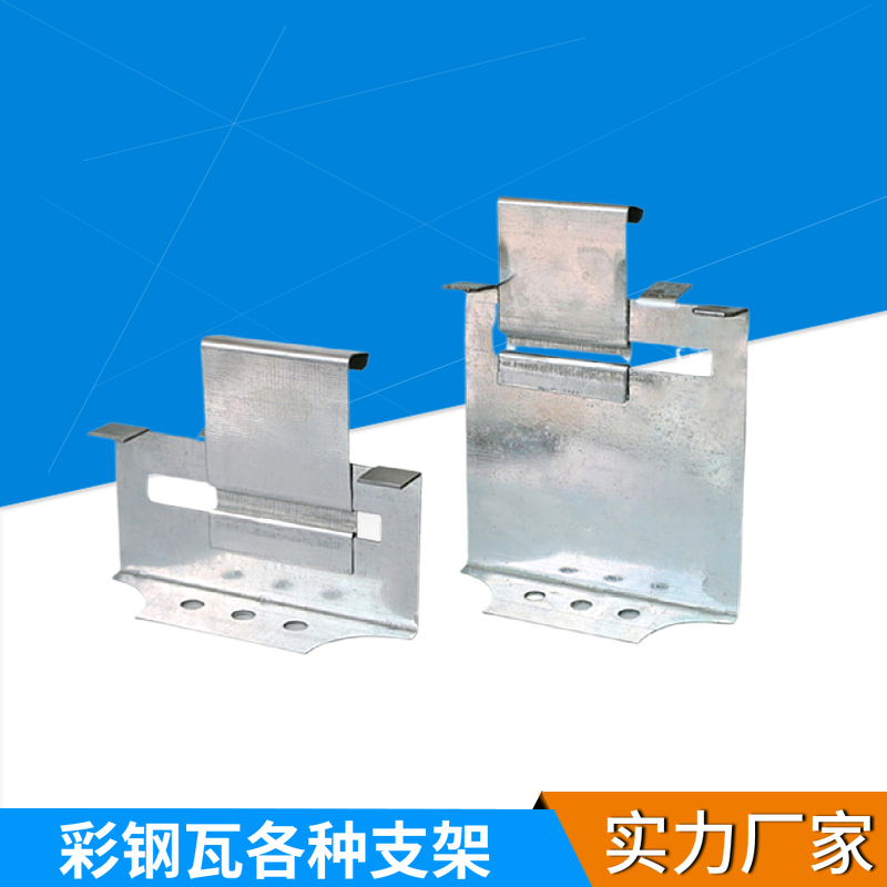 产品用途:支架的规格型号和彩钢板的规格型号匹配着使用,多用于大跨度的钢结构厂房,支架固定在檩条上,起到固定支撑屋面彩钢板的作用,相对于自攻钉,它具有可隐藏性,不易漏水而且受力好等优点。