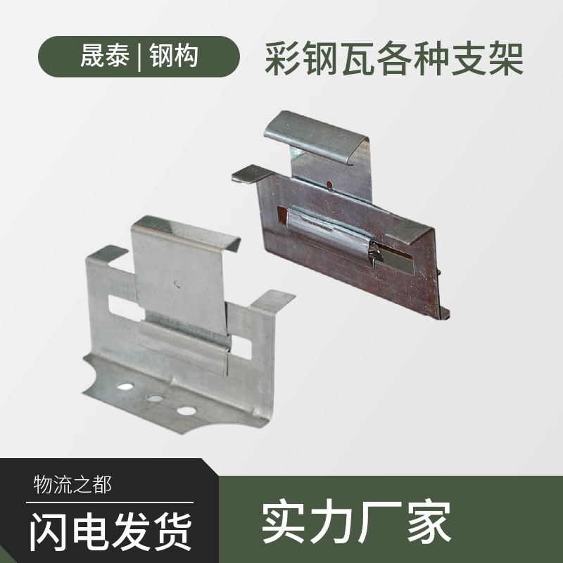 产品用途:支架的规格型号和彩钢板的规格型号匹配着使用,多用于大跨度的钢结构厂房,支架固定在檩条上,起到固定支撑屋面彩钢板的作用,相对于自攻钉,它具有可隐藏性,不易漏水而且受力好等优点。