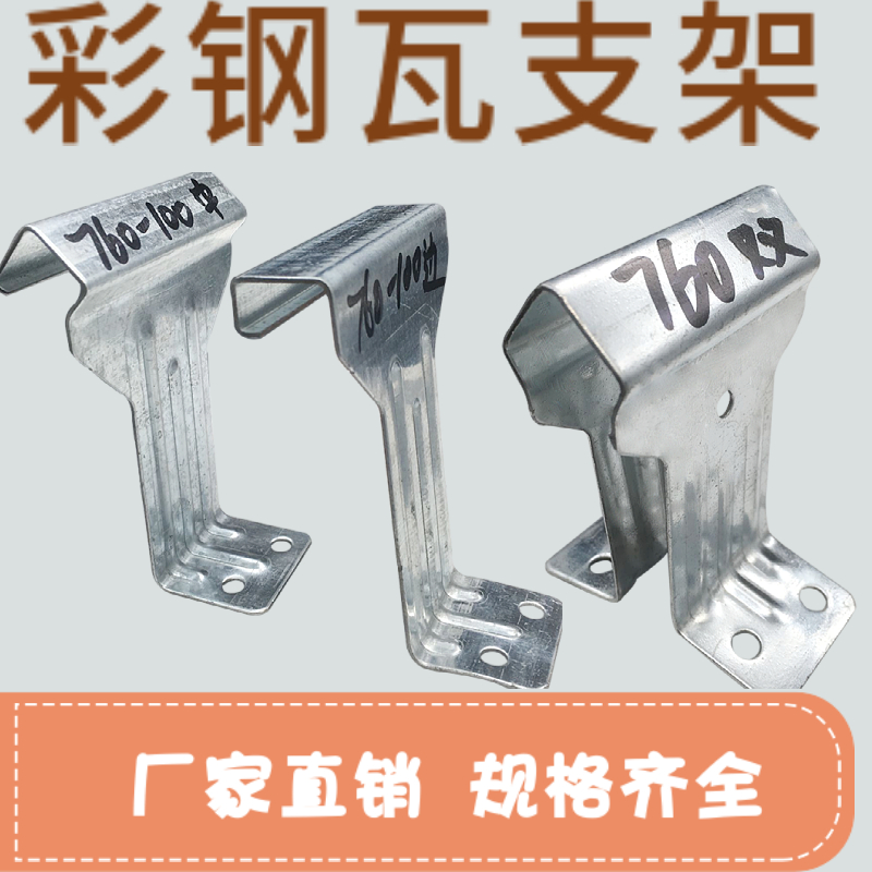 产品用途:支架的规格型号和彩钢板的规格型号匹配着使用,多用于大跨度的钢结构厂房,支架固定在檩条上,起到固定支撑屋面彩钢板的作用,相对于自攻钉,它具有可隐藏性,不易漏水而且受力好等优点。