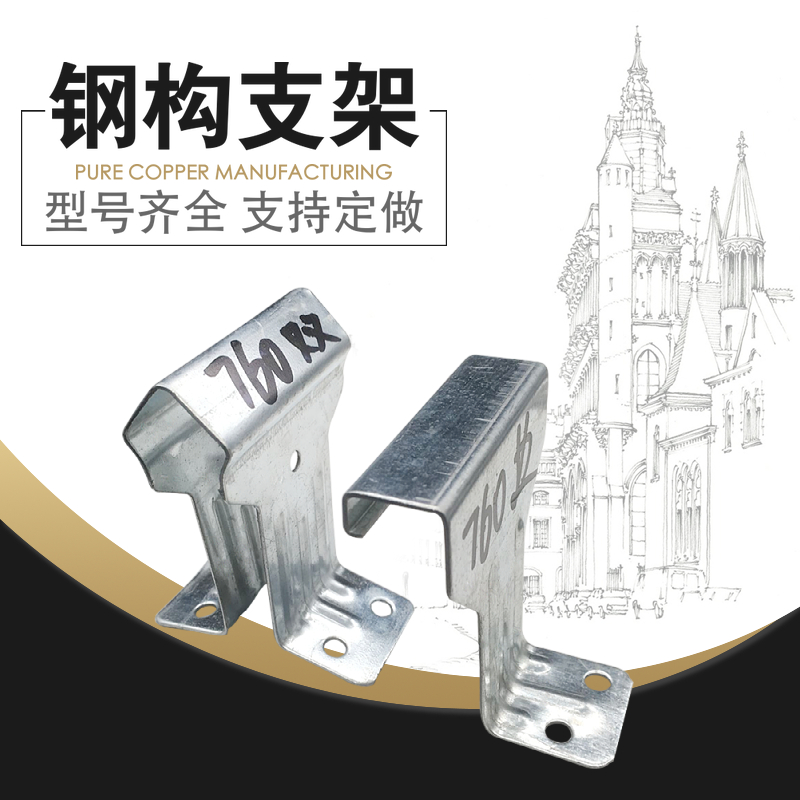760支架又称角驰111760 支架,是应用在角驰三760 型彩钢板上的。起到固;定顶板的作用。760支架底部固定在檩条上,顶部卡在彩钢板里。