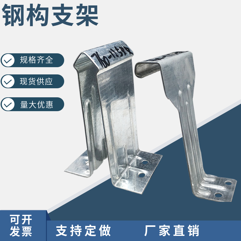 产品用途:支架的规格型号和彩钢板的规格型号匹配着使用,多用于大跨度的钢结构厂房,支架固定在檩条上,起到固定支撑屋面彩钢板的作用,相对于自攻钉,它具有可隐藏性,不易漏水而且受力好等优点。
