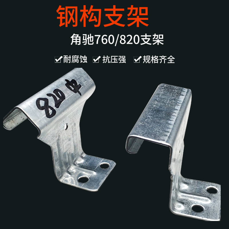 用途:760支架适用于角驰760彩钢瓦金属屋面,包括:一套760支架包括一个(有