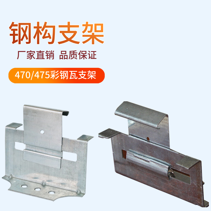 产品用途:支架的规格型号和彩钢板的规格型号匹配着使用,多用于大跨度的钢结构厂房,支架固定在檩条上,起到固定支撑屋面彩钢板的作用,相对于自攻钉,它具有可隐藏性,不易漏水而且受力好等优点。