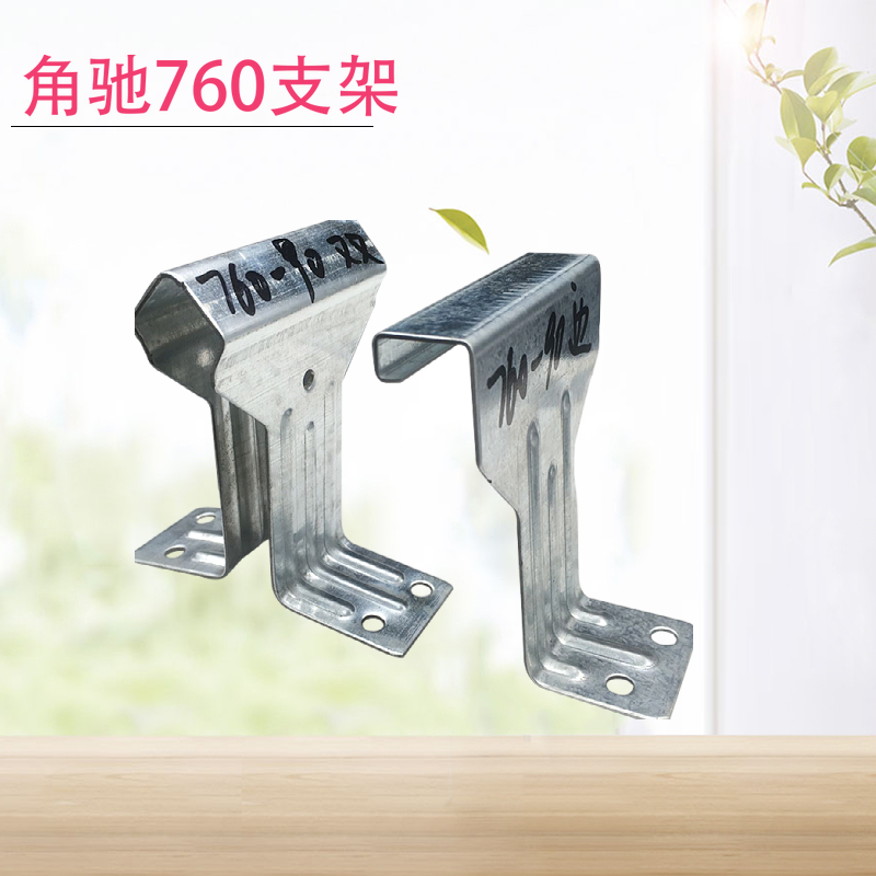 760支架又称角驰111760 支架,是应用在角驰三760 型彩钢板上的。起到固;定顶板的作用。760支架底部固定在檩条上,顶部卡在彩钢板里。