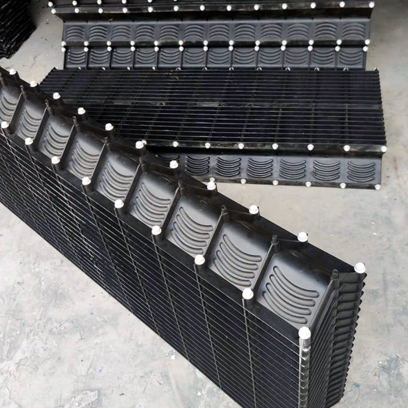 聚丙烯收水器 冷却塔水雾捕滴器 水雾分离器,由捕滴板、支架、螺栓等组成,支架为V型,其正反两面为凹槽状。该捕滴