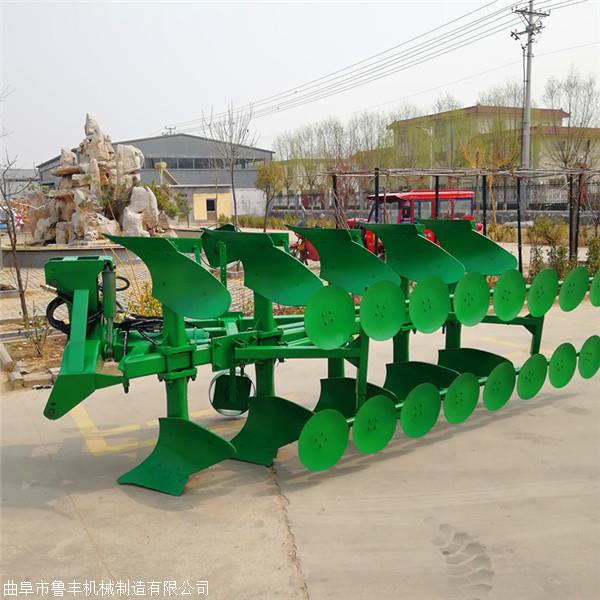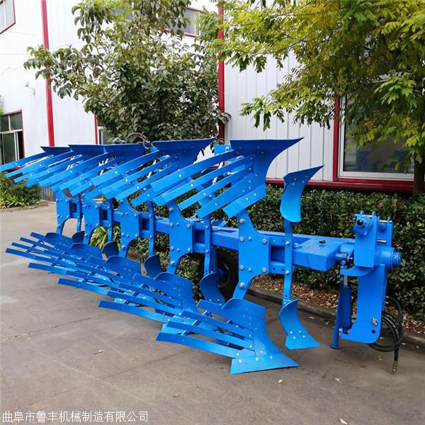 长期以来一直沿用传统耕作方式:用铧式犁进行耕翻作业,耕深一般在25~30cm。长此以往,犁底层厚度增加,土壤蓄水能力减弱,使土壤中的水分得不到的保存和利用,影响农作物的增产丰收。翻转犁的出现轻松解决了这一问题,替代了铧式犁,翻转犁一次进地即可对工作幅宽内的土壤进行正常耕深范围内的翻土以及犁底层的松土,达到上翻下松,不乱土层的深耕要求。液压翻转犁是拖拉机配套使用的,由双联分配器控制犁的升降和犁的翻转。液压翻转犁包括悬挂架、翻转油缸、止回机构、地轮机构、犁架和犁体,通过油缸中活塞杆的伸缩带动犁架上的正反向犁体作垂直翻转运动,交替更换到工作位置。