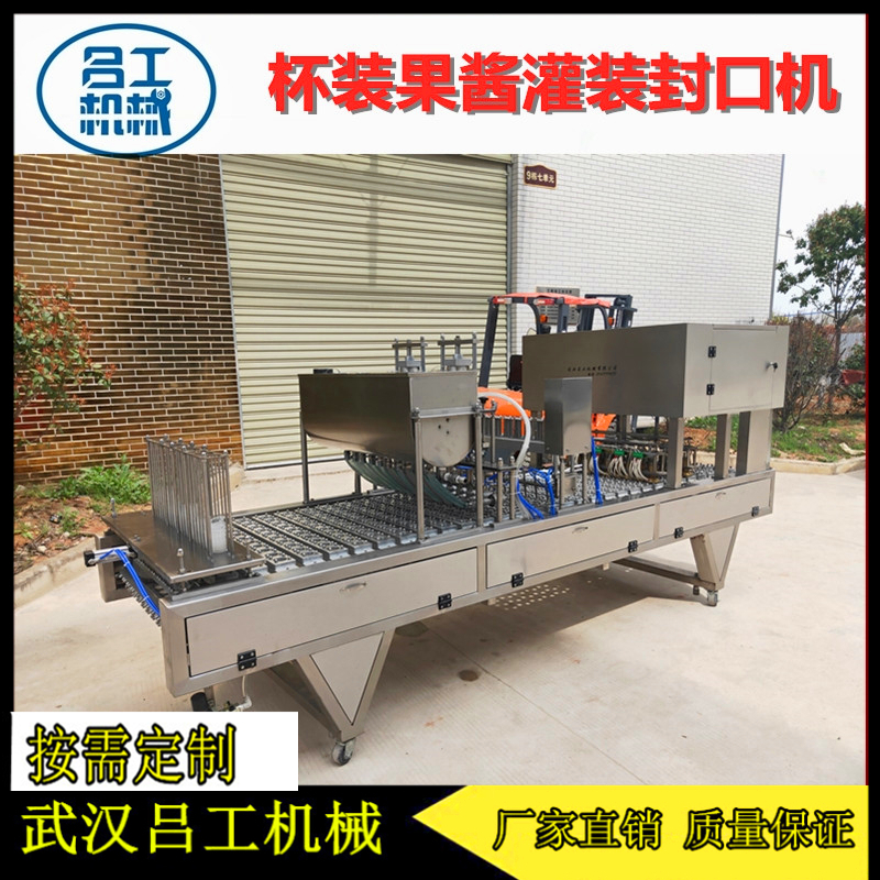 小杯酱灌装封口机 一出四杯 自动下空杯子 活塞缸自动定量灌装 整机结构采用304不锈钢一体焊接