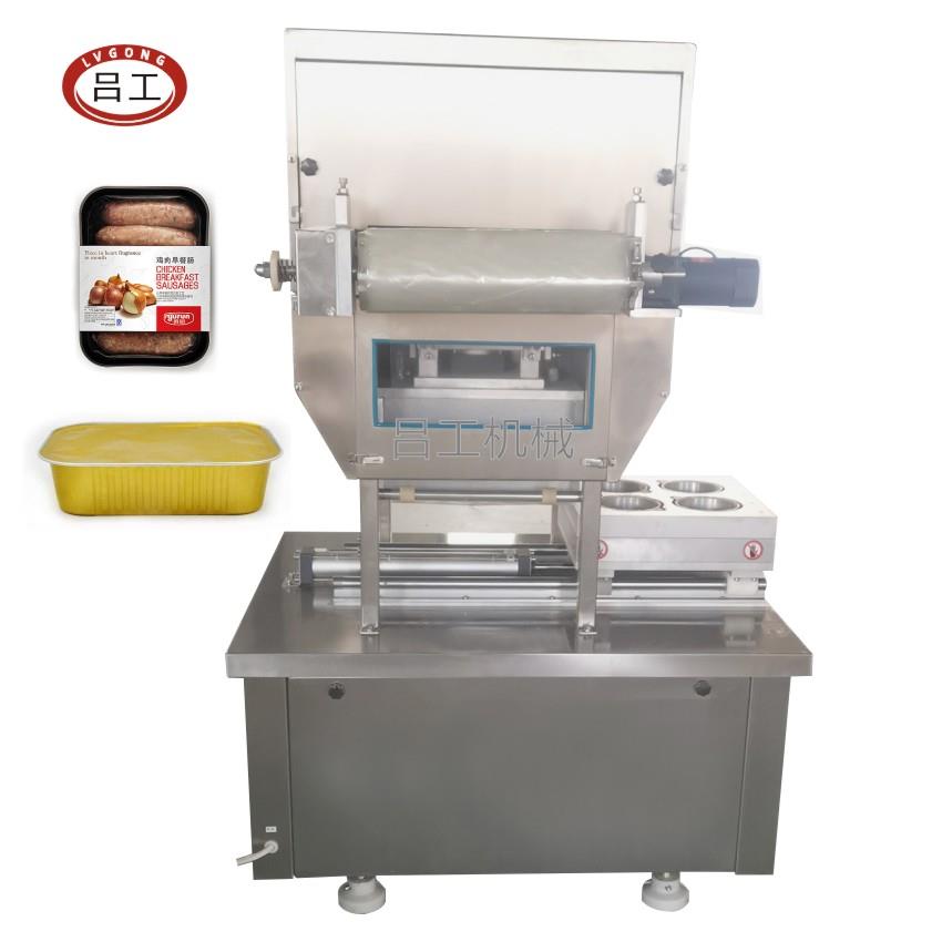 1、本机适合各式食品的盒式包装,自动完成抽真空、自动混合保鲜气体(通常为CO2、N2、O2)、充气、封口包装、分切,包装成品排出等步骤;