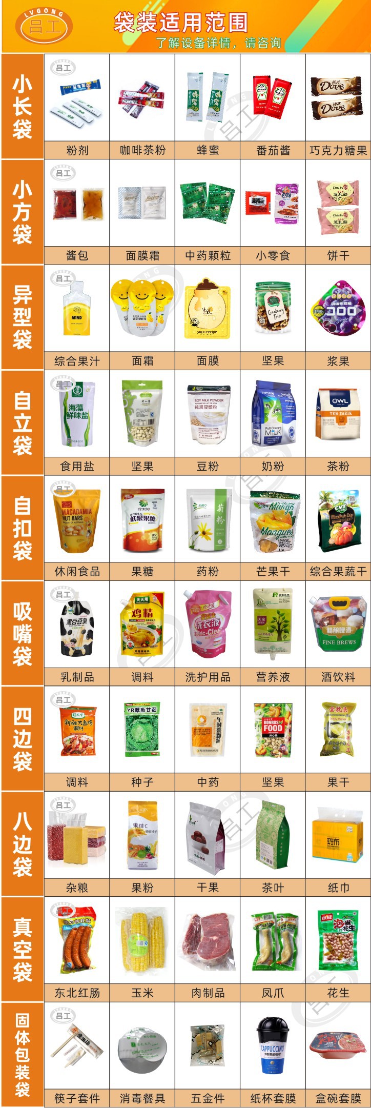 《用途》本机适用于包装洗头水,火锅底料,牛奶,酱油,辣椒酱,饮料,砂浆王,酸奶,花生油,番茄酱,果酱,果冻等液体或者是酱体的全自动成形包装,适用于食品,制药,化工,化妆品,日用品,五金等行业的包装要求,根据客户的要求订做不同的形状及冲头。