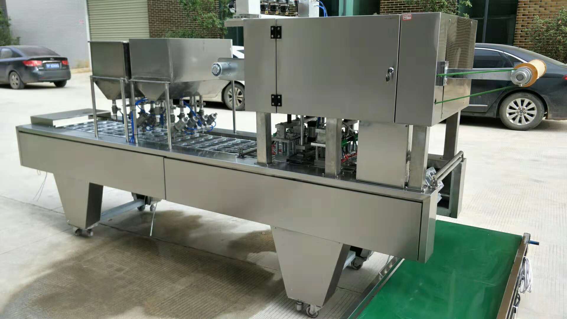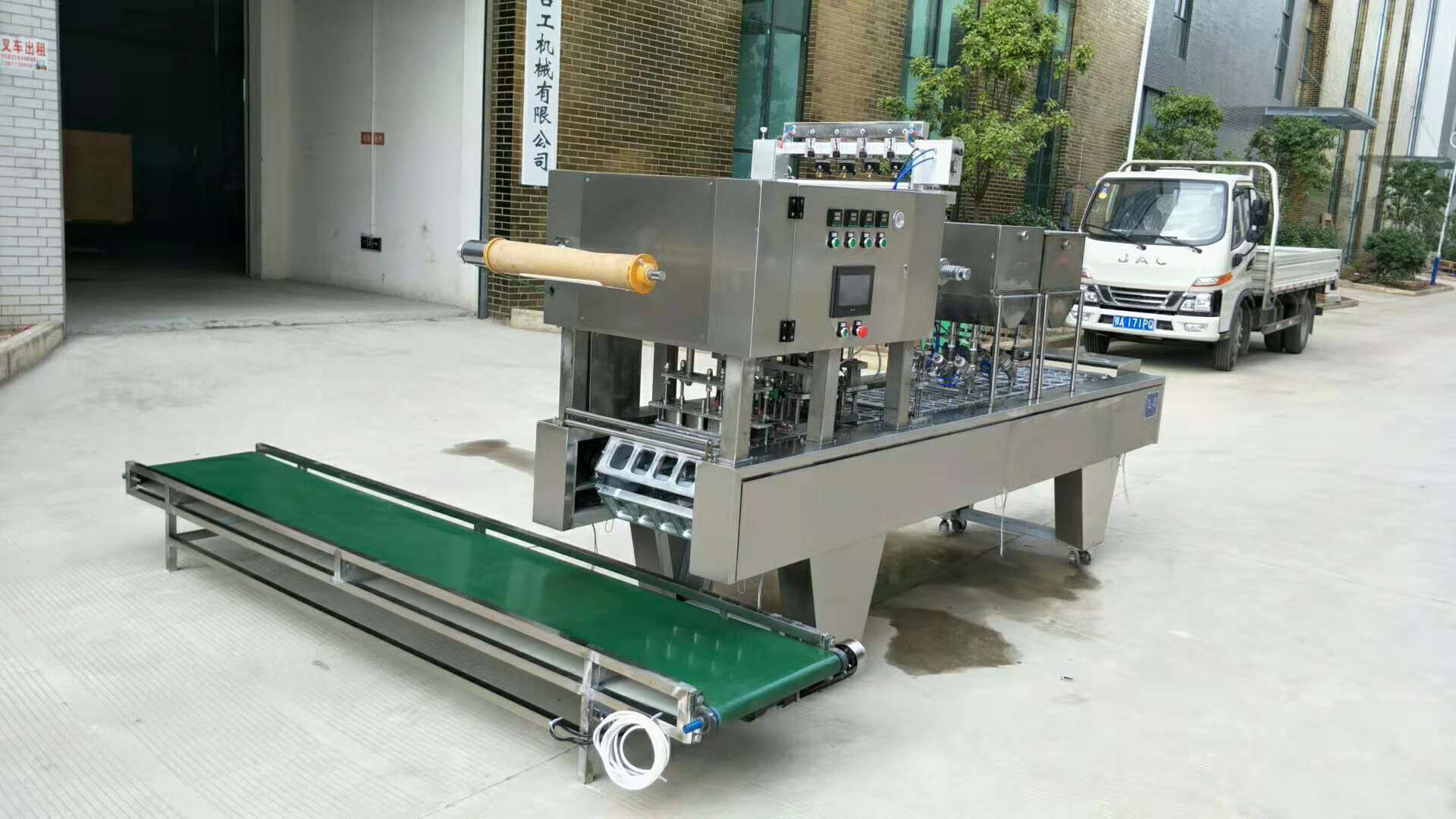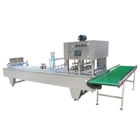 适用于各种酸奶、果冻饮料等产品的生产,能自动完成塑(纸)杯的自动落杯、填充、灌装、卷膜封切、两道热封等功能。整机采用日本欧母龙可编程逻辑控制器、台湾气动控制元件、智能数显温度控制系统,具有封口强度高,密封性好,故障率低等特点,是企业自动化生产的产品。