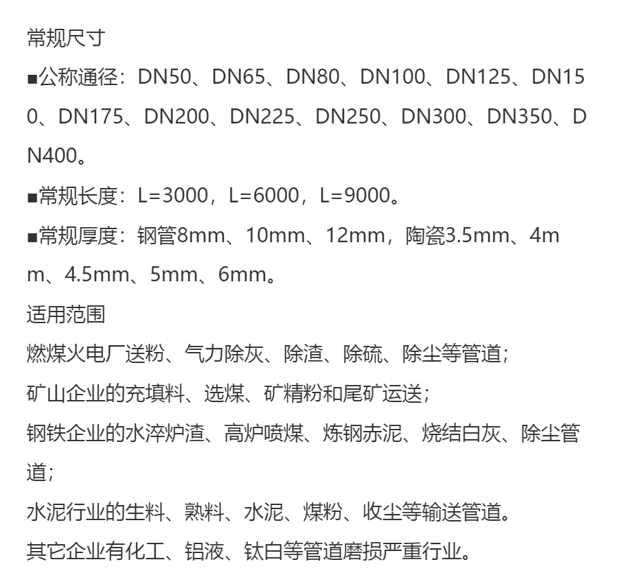 陶瓷内衬复合钢管 |