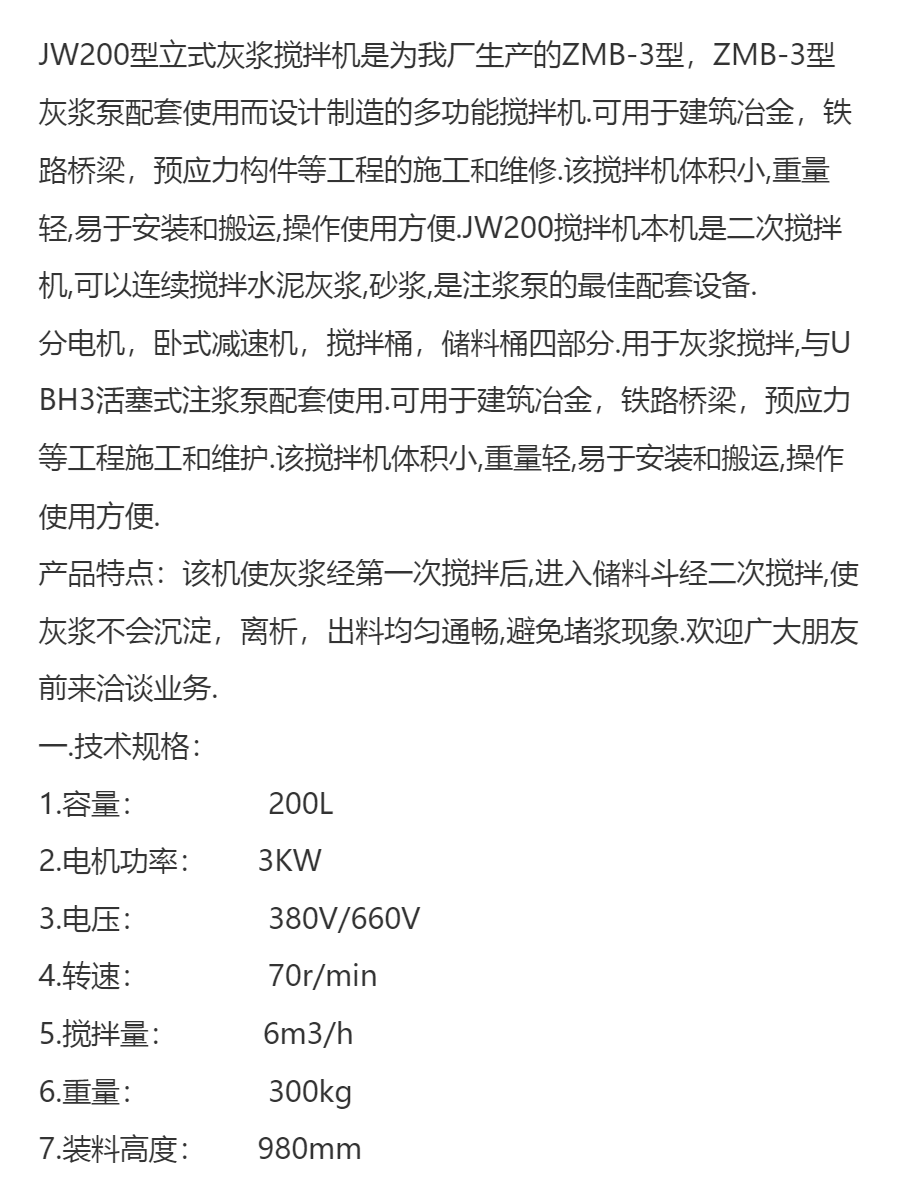 JW200型立式灰浆搅拌机 |