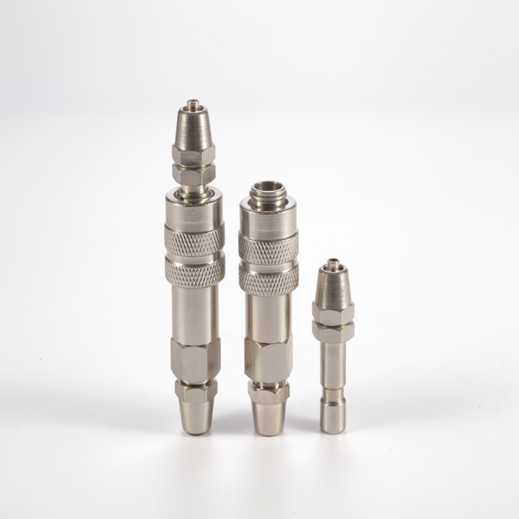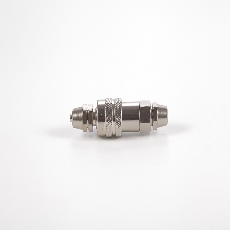 不链接时——当母体的套圈移到另一端时,不锈钢珠自动向外滚动,子体被阀门弹簧的反作用力弹开,阀门就能自动关闭以阻断流体流动。 链接时——当子体插入有套圈的母体一侧时,阀门被打开导致流体流动,垫圈被弹簧的力量推回原来的位置,不锈钢珠会锁住以确保子/母体连接,里面的垫圈能完全阻断流体的渗漏。 使用注意事项: 1、请不要用于快速流体接头以外的用途。 2、请不要用于适用流体以外的流体。 3、请不要与其它公司产的快速流体接头相连接。 4、使用时不要超过较高使用压力。 5、不要在使用温度范围以外使用,防止造成密封材料磨损或泄漏。 6、不要进行人为的击打、弯曲、拉伸、防止造成破损。 7、不要在混入金属粉或砂尘等地方使用,防止造成工作不良或泄漏。 8、如附着杂物会造成工作不良或泄漏。 9、请勿拆卸快速接头。