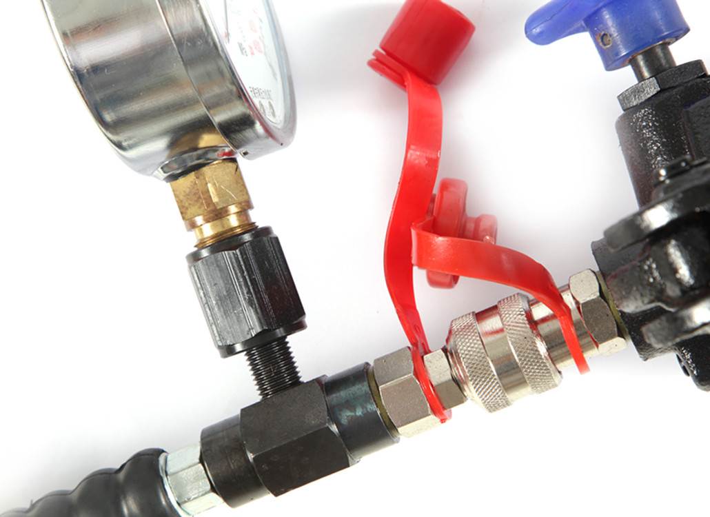 6、 把注脂枪筒后端的快速公接头跟SDB-1超高压手动泵油管前的快速母接头连接好。