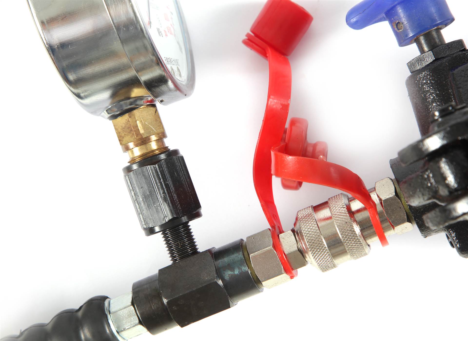 当所需注入的密封脂或黄油注入结束后,再次装满注入物(密封脂或黄油)于枪筒内继续打压,看手动泵上装配的压力表上所显示的压力指数是否达到要求,如未到则继续压动手柄直至指针达到所需压力。