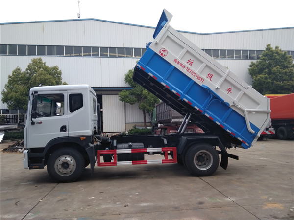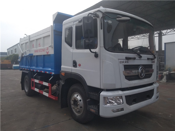 自装卸式运输污泥车:配挂桶提升机自动提升铁通,箱体液压油缸举升自卸,后盖液压油缸开启密封条密封。后盖关闭后,整个车厢内四周达到全密封状态,运输中滴水不漏,避免了道路二次污染,符合绿色环保运输标准。