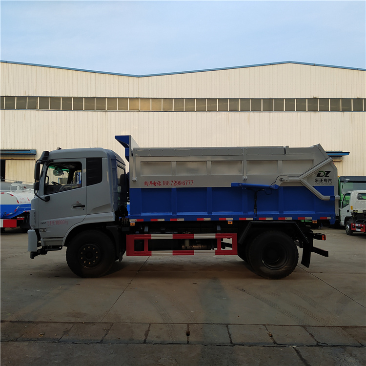 挂桶式污泥粪污收运车,配挂桶提升机,箱体液压举升,后门液压锁紧(耐腐蚀密封条密封确保无滴漏),可通过提升机将桶内粪污升降到车顶进行倾倒。