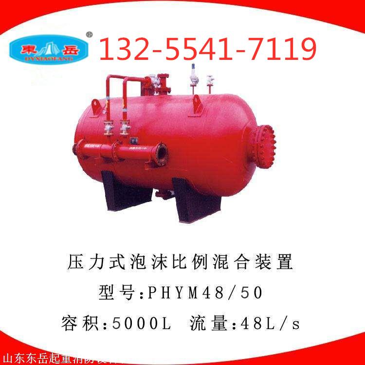 山东东岳起重消防设备制造有限公司生产的PHYM系列压力式比例混合装置简称卧式泡沫罐,严格按照国家标准生产,工艺先进、技术成熟,型号齐备,性能稳定,PHYM系列压力式比例混合装置适用于混合比为3%或6%的各类泡沫液。