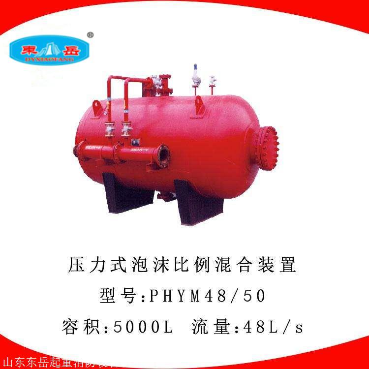压力式泡沫比例混合装置主要由带的泡沫液压力储罐与利用文丘里原理制成的PHY型压力式比例混合器组成,当系统管网中的水流经比例混合器减压孔板时,在孔板的前后会形成压差。压高处的一部分水(3%或6%)通过泡沫罐的进水管进入罐内,挤压,将中的泡沫液通过泡沫罐的出液管挤压至比例混合器低压处与水混合形成泡沫混合液,形成的泡沫混合液输出到泡沫产生设备(中、低、高倍数泡沫产生器,泡沫枪,泡沫炮等)与空气混合产生泡沫灭火一部分水通过“进水阀”管路进入贮罐水腔,挤压,因喷嘴前后微小的压差,使得内的泡沫液经吸液管被挤出与水混合成为泡沫混合液流,经空气泡沫产生器或其它喷射设备喷出泡沫进行灭火工作。贮罐内有一橡胶制成的,使水与泡沫液分隔开,每次使用后,罐内水和泡沫液没能混合而保持原质泡沫液的性能不变,可以继续使用,避免了泡沫液的浪费