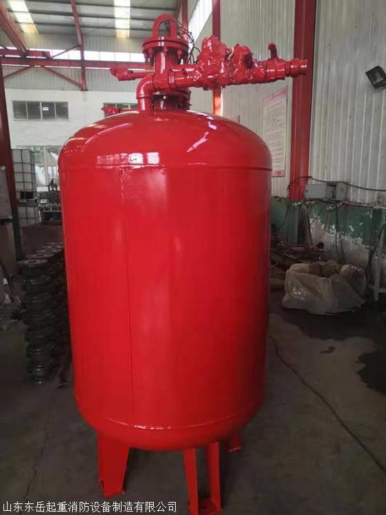 压力水经水管路进入罐体内,产生压力挤压使泡沫液经出液管被挤出,使泡沫液与比例混合器中的水自动按一定比例混合成