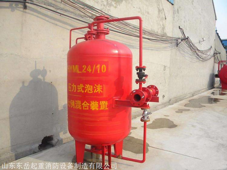 压力式泡沫比例混合装置是用来存储泡沫灭火剂并通过压力式泡沫沫比例混合器利用泵组的供水将泡沫灭火剂置换出来,并与供水按一定的比例混合形成泡沫混合液的装置。