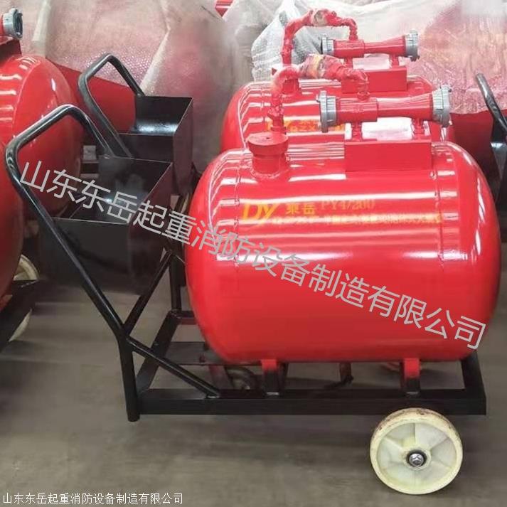PY系列半固定式(轻便式)泡沫灭火装置由罐体、比例混合器、底盘车和水带筐和阀门组成,底部有三个轮子,前面两个为定向轮,后面一个为万向轮可以灵活转动,,罐顶装有PHF型管线式比例混合器和PQ型泡沫枪。当压力水通过比例混合器的喷嘴时流速增大形成负压,吸液管将泡沫原液从罐内吸到比例混合器中与水混合形成泡沫混合液,经过泡沫枪吸入空气后形成泡沫,对准火点,进行灭火。