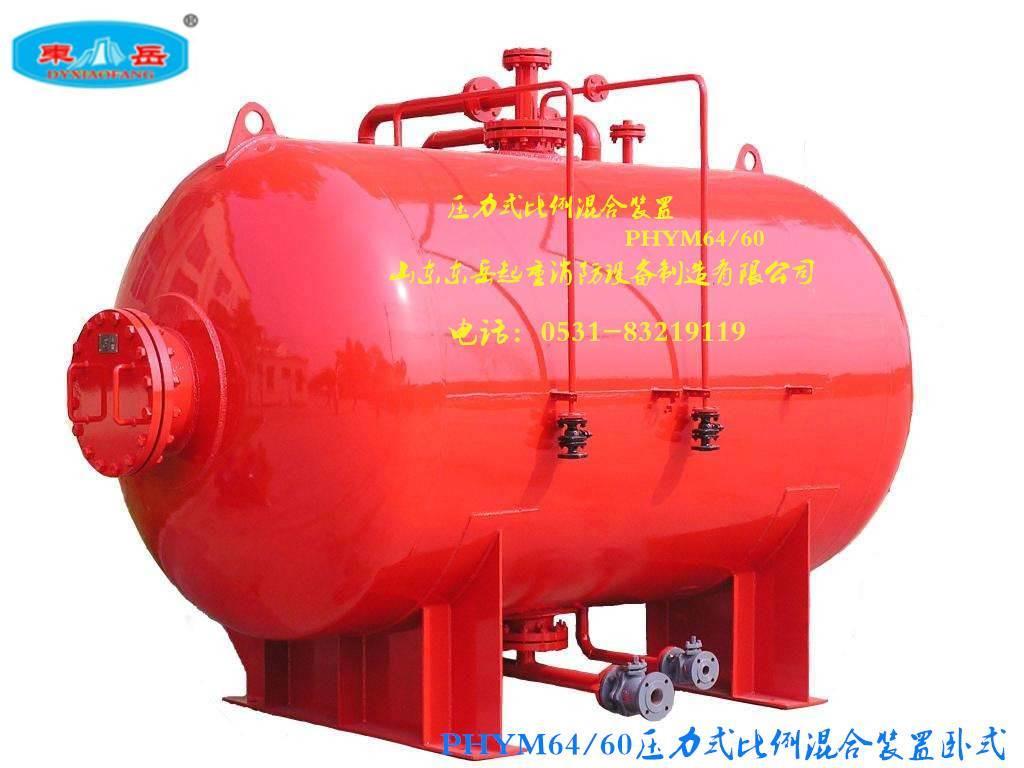 山东东岳起重消防设备制造有限公司生产的PHYM系列压力式比例混合装置简称卧式泡沫罐,严格按照国家标准生产,工艺先进、技术成熟,型号齐备,性能稳定,PHYM系列压力式比例混合装置适用于混合比为3%或6%的各类泡沫液。