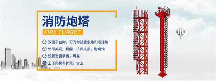 消防炮塔是一种固定在特定位置的消防装置,一般可以远程和现场控制。塔分一或两屋。有消防清水泡和泡沫炮。当发生险情时,可以在控制室操作台启动消防清水泡或泡沫炮或两者同时启动,并远程可以对相应炮管进行上、下、左、右移动,以调整姿态对着火点进行灭火和降温。