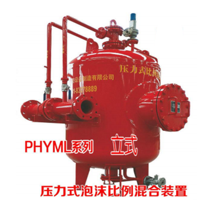 山东东岳起重消防设备制造有限公司生产的PHYML系列压力式比例混合装置简称立式泡沫罐,严格按照国家标准生产,工艺先进、技术成熟,型号齐备,性能稳定,安全可靠、灭火效率高,PHYML系列压力式比例混合装置适用于混合比为3%或6%的各类泡沫液;混合液流量为24-80L/S,泡沫罐容积1000L-3000L。