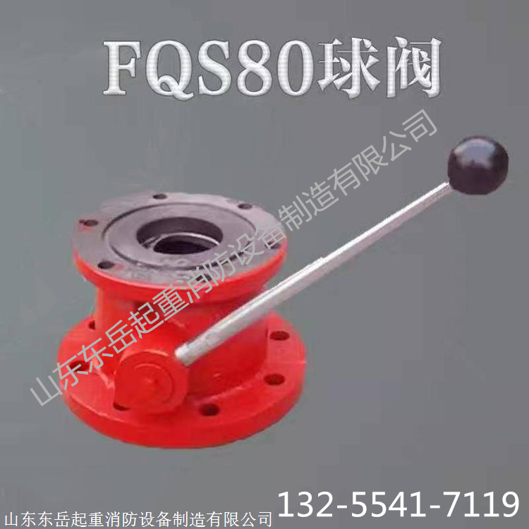 山东东岳起重消防设备制造有限公司为各种消防炮配套生产专用球阀,规格型号:FQS80A,FQS80B,FQS80C,FQS65型, FQS80A型/1.6 消防炮专用球阀是专门为消防炮配套使用的球阀,其结构特点为:连接法兰为进水口DN100法兰,出水口为DN80法兰,双向密封,带手动泄水阀,在高寒地区冬季使用时,阀门关闭后可打开手动泄水阀,将阀球里面的水排掉,从而防止将球阀冻裂。连接方式也可根据用户要求定做。