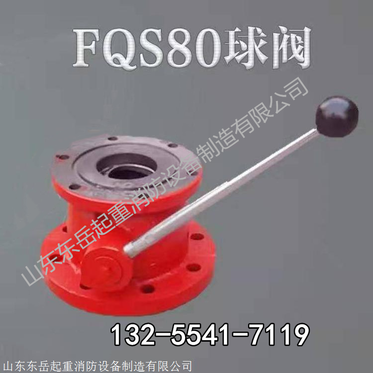 山东东岳起重消防设备制造有限公司为各种消防炮配套生产专用球阀,规格型号:FQS80A,FQS80B,FQS80C,FQS65。接口有65、80两种规格,其中FQS80型消防球阀根据法兰接口的尺寸不同分为A、B、C三种型号,法兰底座一般为圆形;法兰螺纹数量,可按客户要求定制。