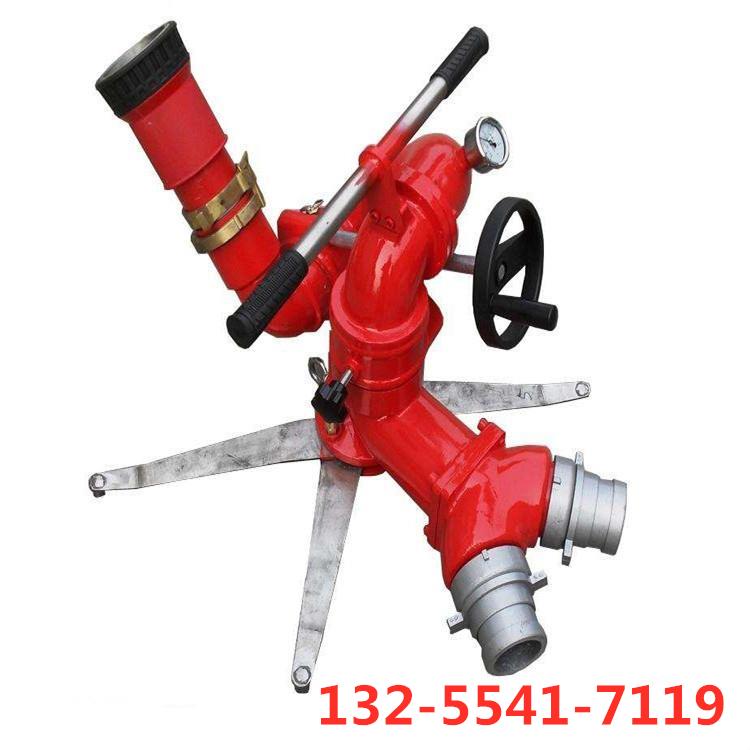 水力自摆式消防水炮是通过压力水来驱动的摇摆式消防炮,是目前国内为先进的水力自摆炮,它具有重量轻,体积小,使用方便等特点。在火灾现场,它可以在一定的区域内,针对特定的目标,以一定的俯仰角度和摇摆频率进行直流或喷雾喷射,以达到火灾现场灭火、冷却、稀释、保护等功效,省去了消防员长时间对消防水枪或消防炮的把持及机械操作,是消防部队、专职消防队和石油化工行业消防装备。该炮具有射程远、操作简单灵活,仰俯可实现定位以利于消防人员远离火场险情。