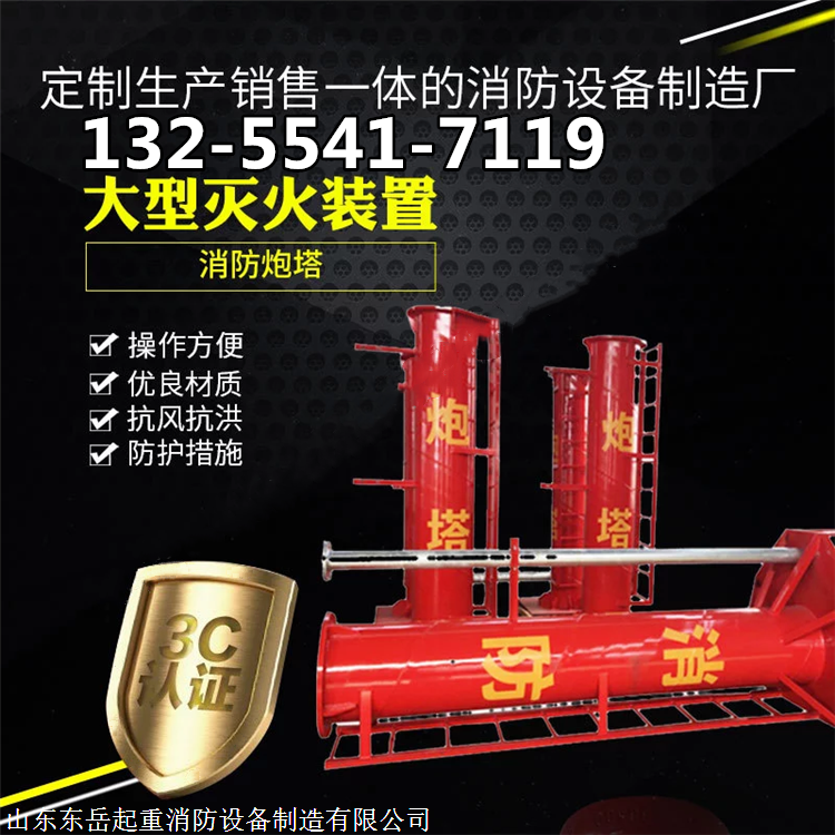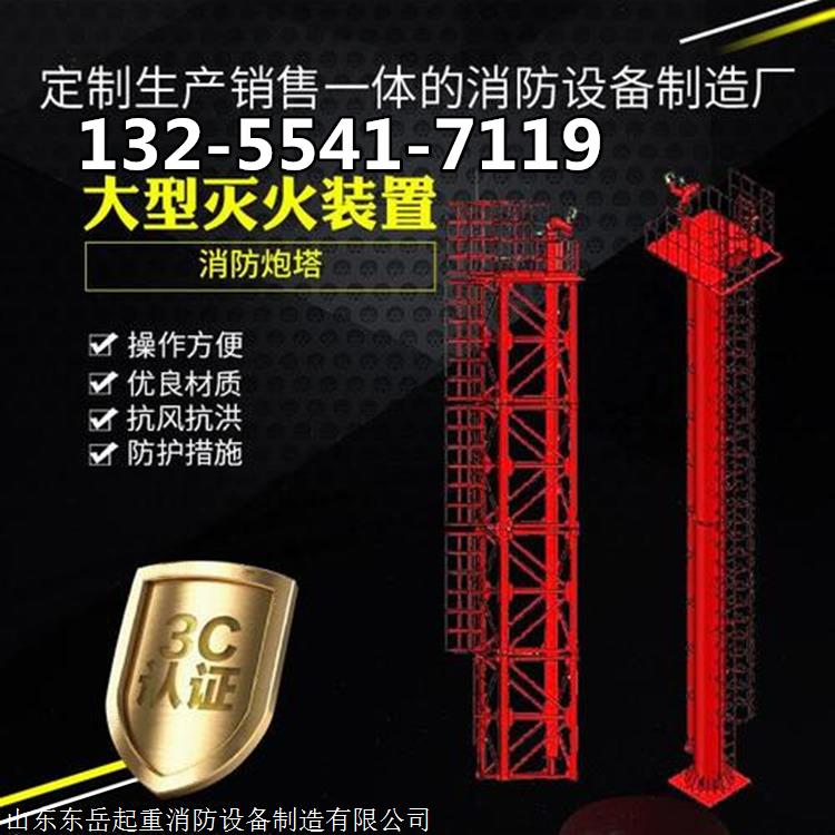 消防炮塔是一种固定在特定位置的消防装置,一般可以远程和现场控制。塔分一或两屋。有消防清水泡和泡沫炮。当发生险情时,可以在控制室操作台启动消防清水泡或泡沫炮或两者同时启动,并远程可以对相应炮管进行上、下、左、右移动,以调整姿态对着火点进行灭火和降温。
