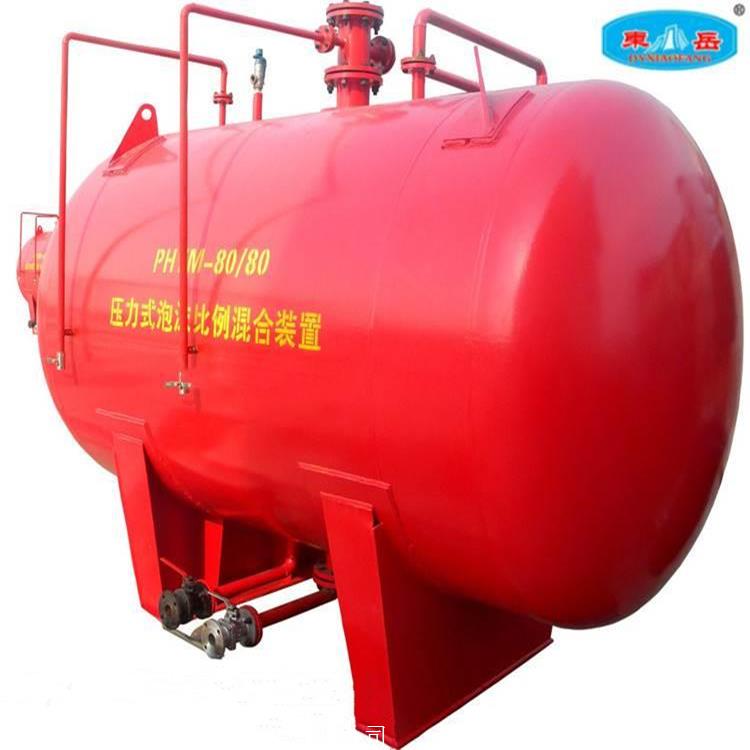 压力式比例混合装置按填盛方式分隔膜式、普通型;按罐体放置方式分为卧式、立式两种形式。泡沫混合比一般为3%或6%,亦可提供8%的混合液用于中倍数泡沫灭火系统。该装置混合液流量12-800L/S,贮罐容积有1000-10000L不同规格。根据所需要的混合液流量和泡沫喷射时间,比例混合器和泡沫罐可任意组合成系列产品,以满足工程应用的需要。