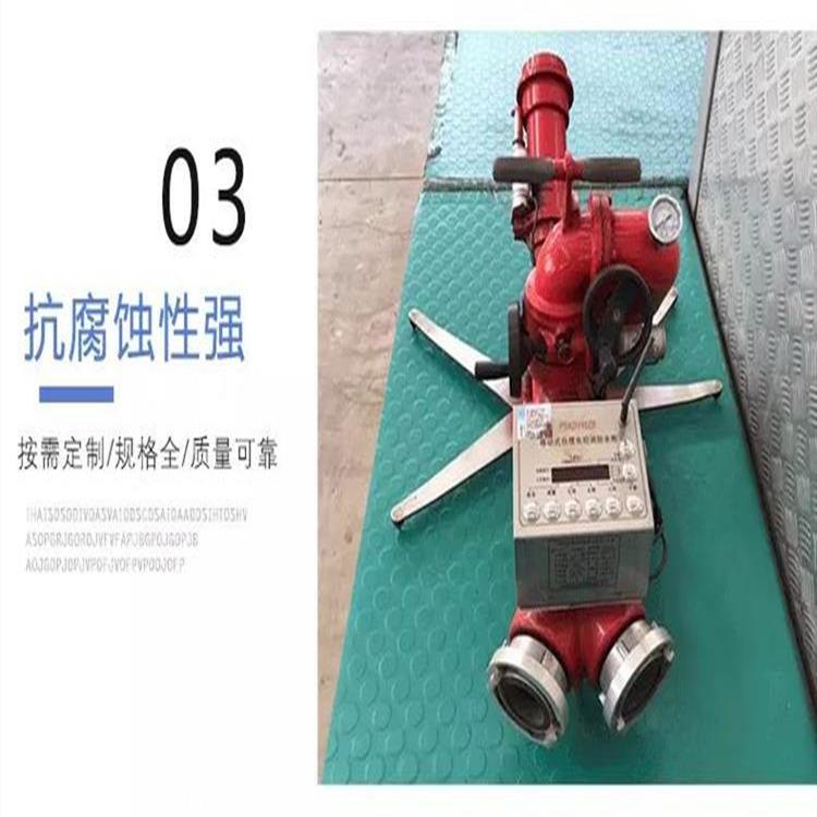 水力自摆式消防水炮是通过压力水来驱动的摇摆式消防炮,是目前国内为先进的水力自摆炮,它具有重量轻,体积小,使用方便等特点。在火灾现场,它可以在一定的区域内,针对特定的目标,以一定的俯仰角度和摇摆频率进行直流或喷雾喷射,以达到火灾现场灭火、冷却、稀释、保护等功效,省去了消防员长时间对消防水枪或消防炮的把持及机械操作,是消防部队、专职消防队和石油化工行业消防装备。该炮具有射程远、操作简单灵活,仰俯可实现定位以利于消防人员远离火场险情。