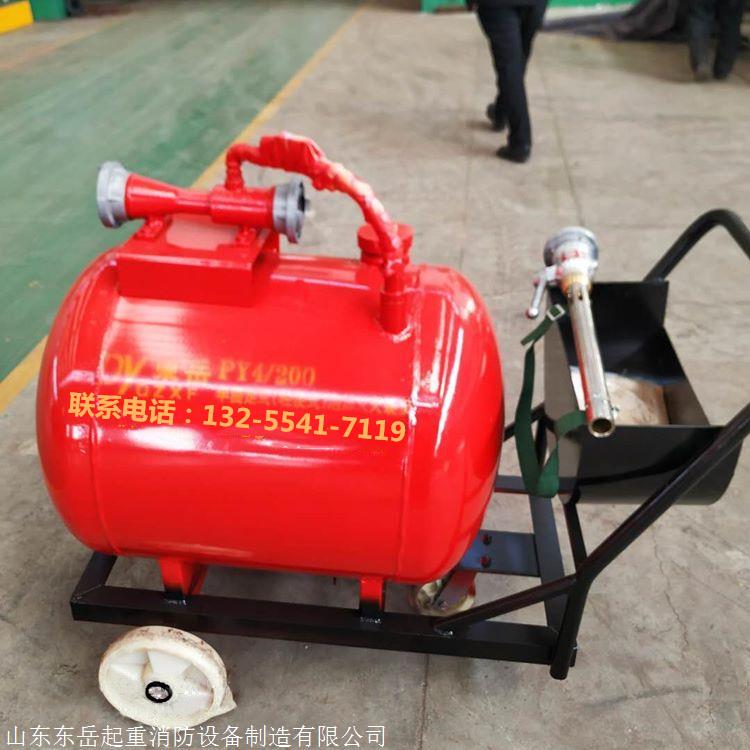 山东东岳起重消防设备制造有限公司生产的PY移动泡沫灭火装置泡沫液容积200~500L,额定进口压力:0.6-0.8MPa,泡沫混合液额定流量:4或8L/S,适用泡沫液的混合比例为3或6%,进出口接口:KY65内扣式管牙接口;适用于3%或6%混合比的泡沫液。