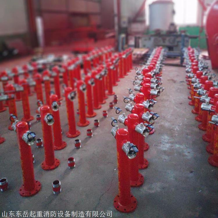 山东东岳起重消防设备制造有限公司生产的PS100/150-65X2型号地上式泡沫消火栓是泡沫灭火系统中安装在泡沫混合液管线上,向泡沫喷射设备供给泡沫混合液的一种专用消防设备。该泡沫消火栓为双出口型,两个装有KY65/80管牙和KM 65/80闷盖的FQS65/80C型双封消防球阀组成了该设备的两个出液口,供连接消防水带放出泡沫混合液使用。如果用移动式泡沫炮灭火,可以用水带同时连接两个出液口,如果只用一个出液口用泡沫枪灭火,可将另一个出液口球阀关闭,防止漏液,以免影响泡沫液流量和压力。使用时先接好水带和喷射装置后才可打开液阀,应注意阀门的开关方向。其特点是:结构简单、安装方便、性能稳定可靠、维护保养费用低。被广泛应用于石油化工企业、储油罐区、飞机场、仓库、港口码头等场所。
