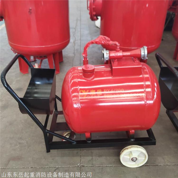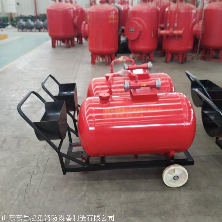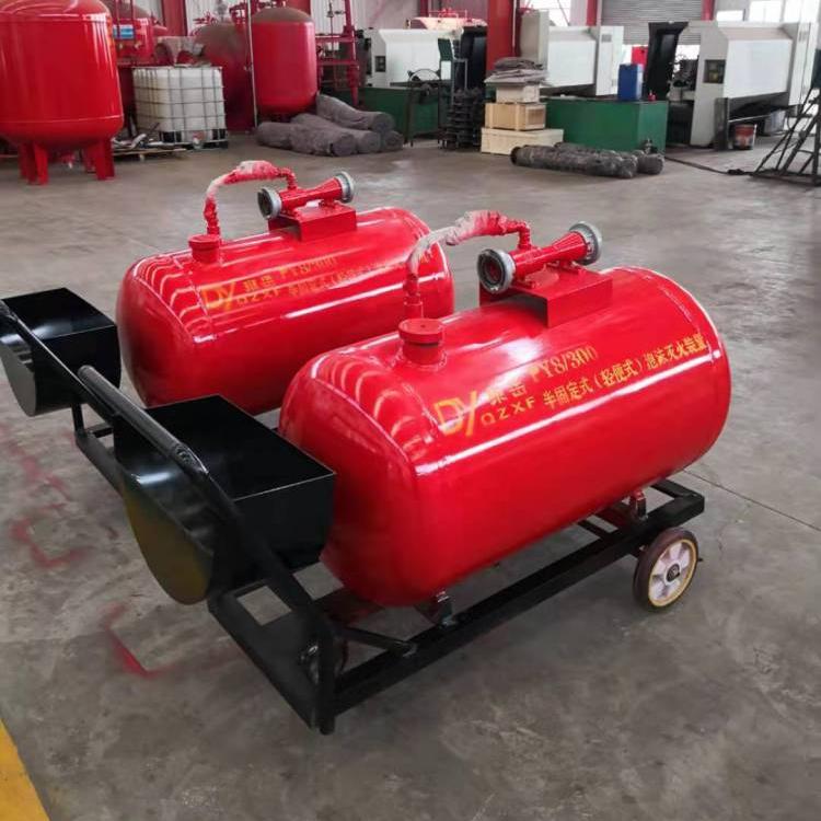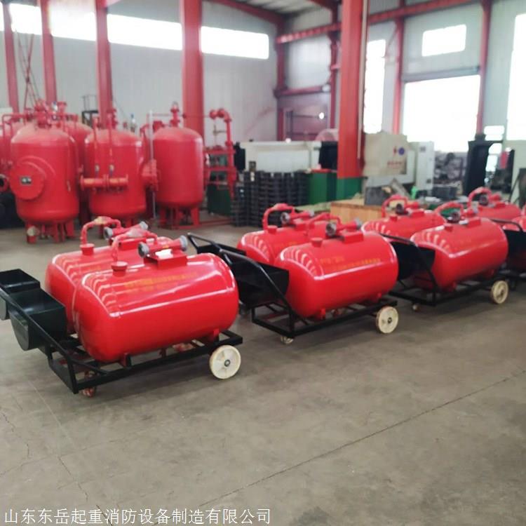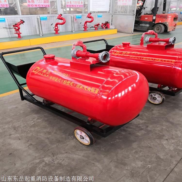 移动式泡沫车、PY移动(车)式泡沫灭火装置是一种轻便移动灵活的推车式灭火设备。它采用PHF型管线(负压)式比例混合器,可与泡沫枪及泡沫产生器组成低、中、高倍数泡沫灭火系统。当压力水经过混合器时,水跟泡沫液按一定比例混合,经泡沫枪、泡沫产生器喷射泡沫扑灭火灾。由推车、常压泡沫罐、负压比例混合器、喷射设备、水龙带、安全阀、控制阀门及一些辅助零部件等组成。移动式泡沫灭火装置,其操作迅速简便、可靠性强。用于扑灭甲、乙、丙类非水溶性液体火灾。被广泛用于市政住宅区、厂矿企业、油库、化工部门、热处理车间、加油站等场所。移动式泡沫灭火装置在灭火时其管线式比例混合器的两端的管牙接口与消防水带连接,并连接压力水源,当有不低于0.6MPa压力的水以很高的速度流过比例混合器的喷嘴时,由于射流质点的横向移动的扩散作用,比例混合器的室内形成真空(负压),于是泡沫液储罐内的泡沫液在大气的压力作用下通过吸液管进入混合器,与压力水混合,终达到一定比例的混合液,经泡沫枪、泡沫产生器喷射泡沫扑灭火灾。