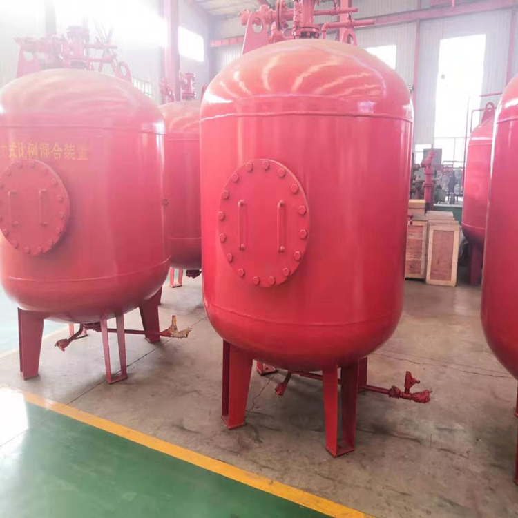 压力式泡沫比例混合装置主要由带的泡沫液压力储罐与利用文丘里原理制成的PHY型压力式比例混合器组成,当系统管网中的水流经比例混合器减压孔板时,在孔板的前后会形成压差。压高处的一部分水(3%或6%)通过泡沫罐的进水管进入罐内,挤压,将中的泡沫液通过泡沫罐的出液管挤压至比例混合器低压处与水混合形成泡沫混合液,形成的泡沫混合液输出到泡沫产生设备,与空气混合产生泡沫。