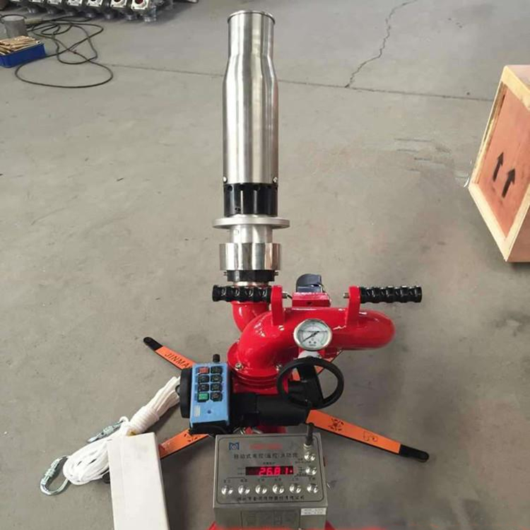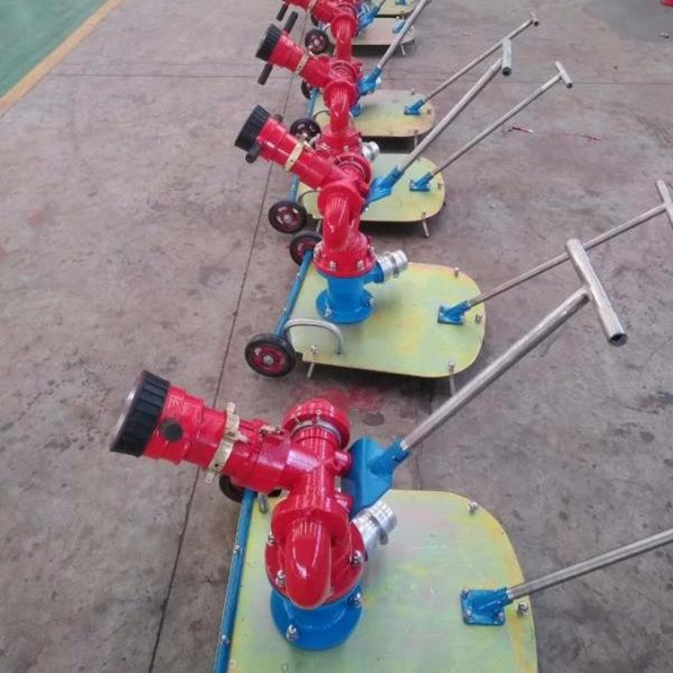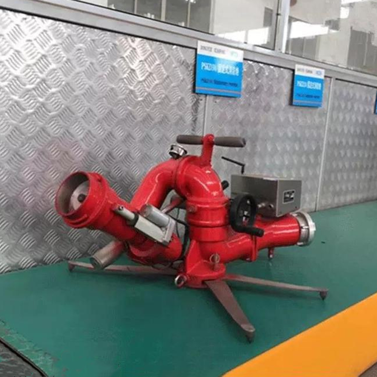 消防水炮由底座、进水管、回转体、集水管、射流调节环、手把和锁紧机构等组成炮身可作水平回转和仰俯回转,并可实现定位。消防炮使用压力范围广,射程远并可实施直流至90°开花、水雾射流的无极调节。其重量轻、体积小、功能全、灭火效果好,是炮的 特点。