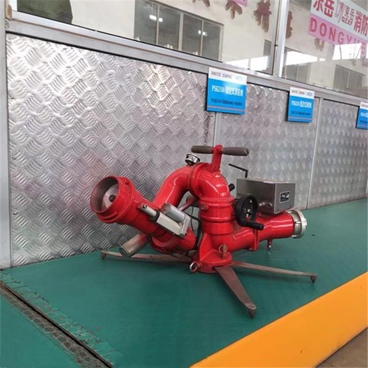 固定式消防水炮是由底座、壳体、喷头、炮筒、水平回转等机构组成,消防水炮炮身可作水平回转、俯仰转动,并能实现可靠定位锁紧,以利消防人员撤离火场,保护消防人员的人身安全。消防水炮具有直流/开花两种喷射功能,当喷射水柱时,可扑灭远距离固体火灾;当喷射开花水雾时,可用于火场降温冷却、消防抢险。因该炮功能齐全、性能稳定、结构新颖、操作方便,消防水炮广泛适用于配备重型消防车、消防舰艇,也可作为工矿企业、仓库、油田、贮罐的固定灭火设备。