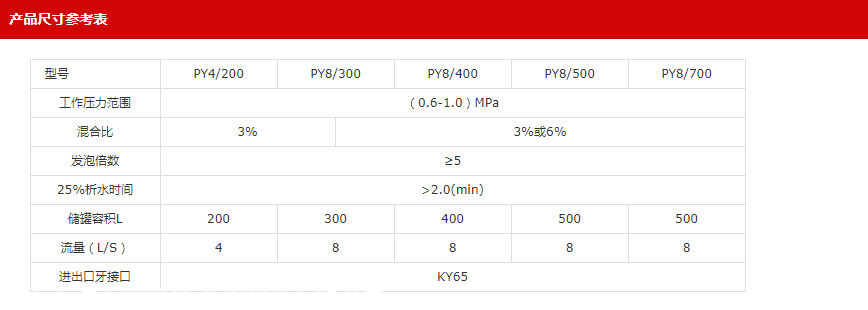 2:泡沫混合液额定流量:8或6L/s