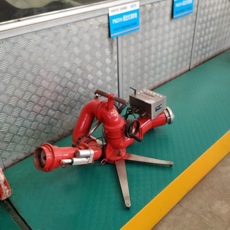 消防水炮由底座、进水管、回转体、集水管、射流调节环、手把和锁紧机构等组成炮身可作水平回转和仰俯回转,并可实现定位。消防炮使用压力范围广,射程远并可实施直流至90°开花、水雾射流的无极调节。其重量轻、体积小、功能全、灭火效果好,是炮的 特点。