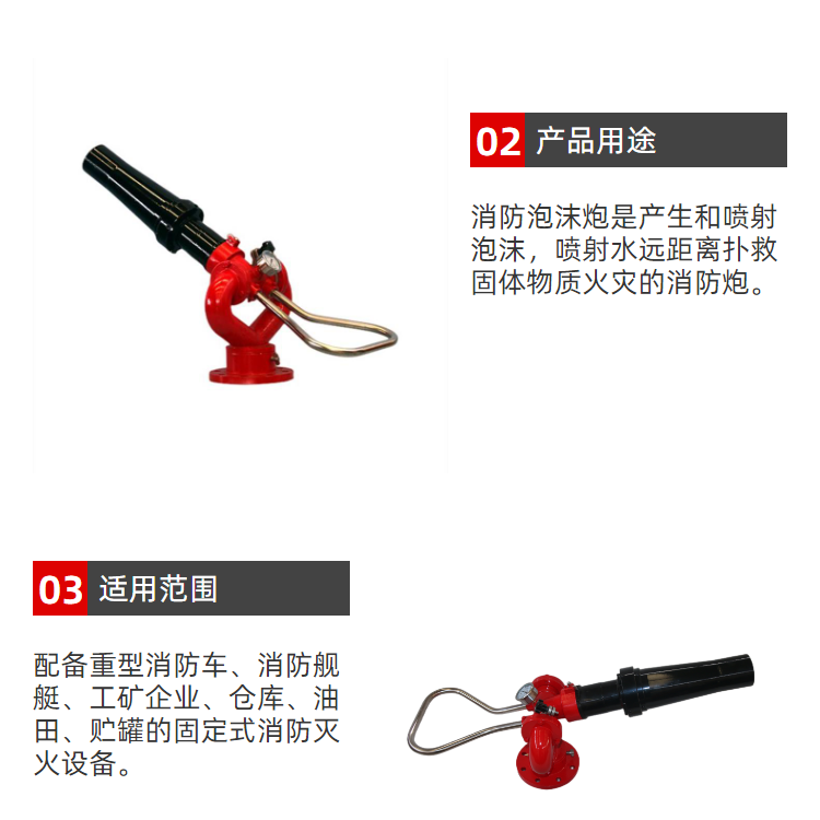 可装备于各种消防车、消防艇、固定消防炮塔和消防管路上 |