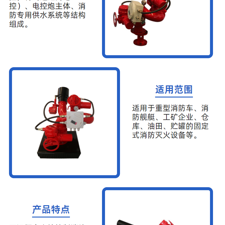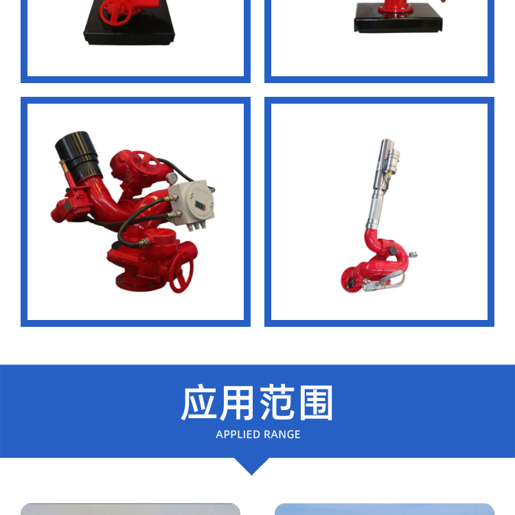 可装备于各种消防车、消防艇、固定消防炮塔和消防管路上 |