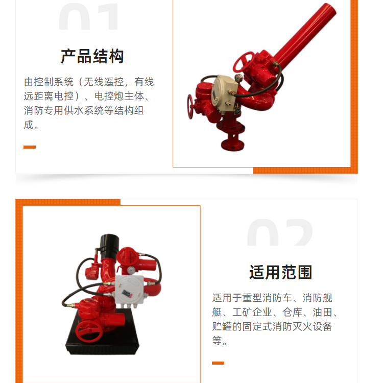 可装备于各种消防车、消防艇、固定消防炮塔和消防管路上 |