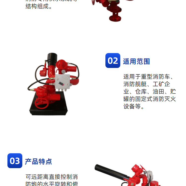 可装备于各种消防车、消防艇、固定消防炮塔和消防管路上 |