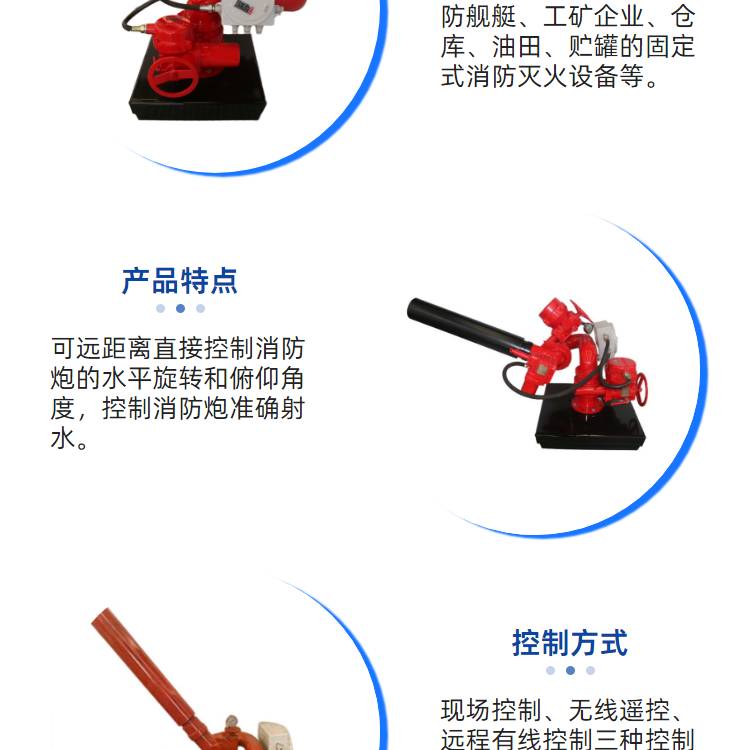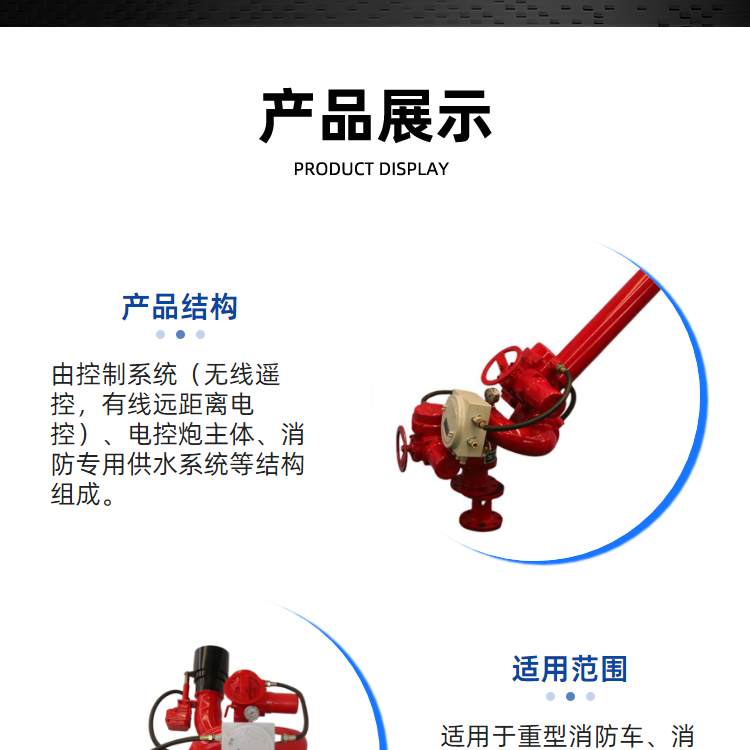 可装备于各种消防车、消防艇、固定消防炮塔和消防管路上 |
